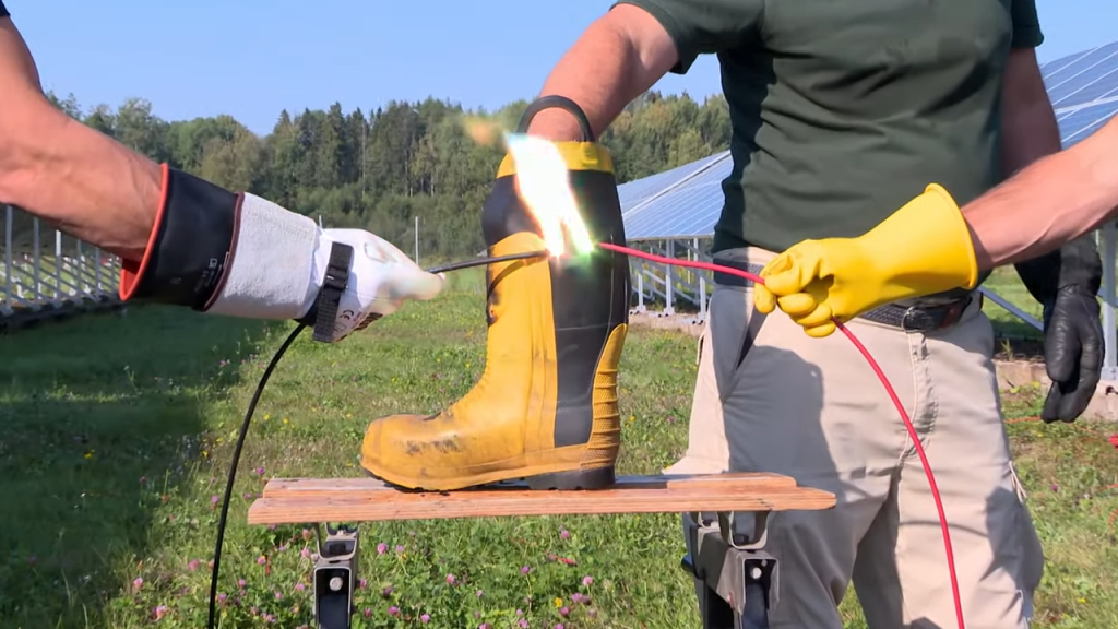 - Bland annat testade man att skapa ljusbågar med maximal spänning och ström i systemet, mot både handskar och stövlar. Testerna visade att räddningstjänstens normala skyddsutrustning ger ett väldigt bra skydd.