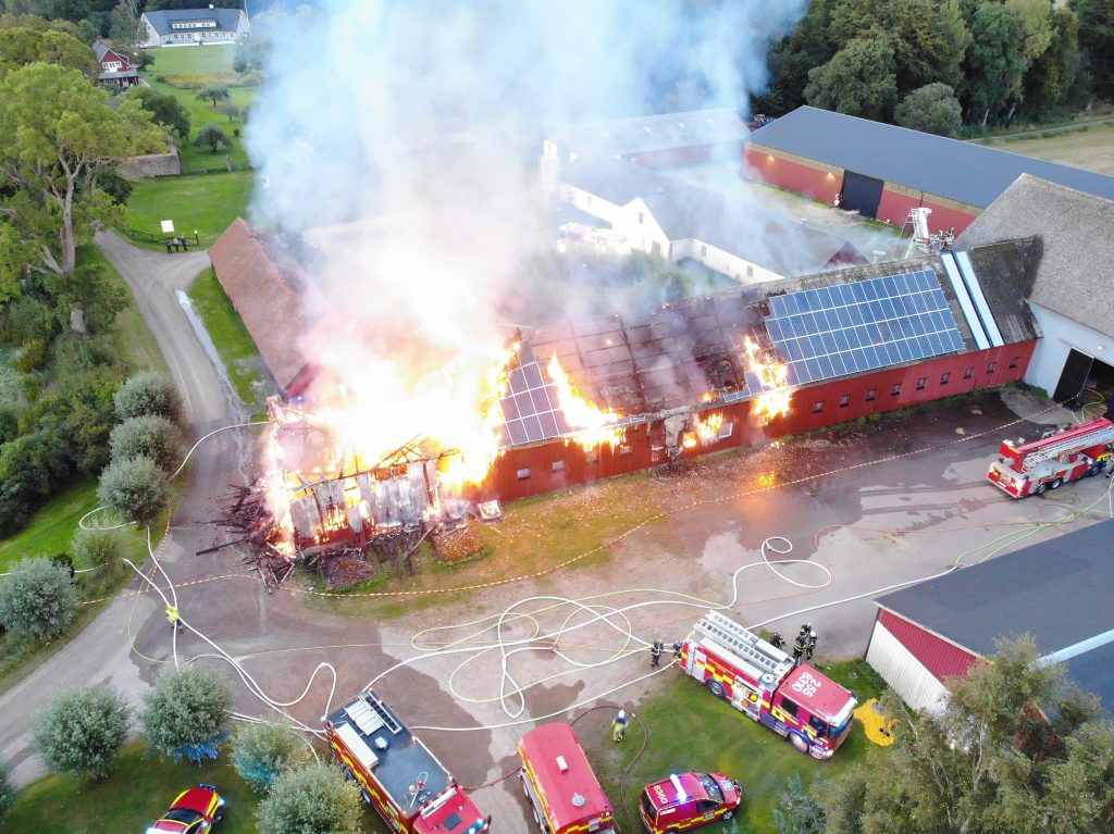 Natten den 4 juli började det brinna på taket till ett flerfamiljshus i Emmaboda. Flera familjer evakuerades och släckningsarbetet pågick under många timmar. För SVTs lokalnyheter beskrev räddningstjänsten att insatsen var komplicerad eftersom taket var täckt med solcellspaneler.