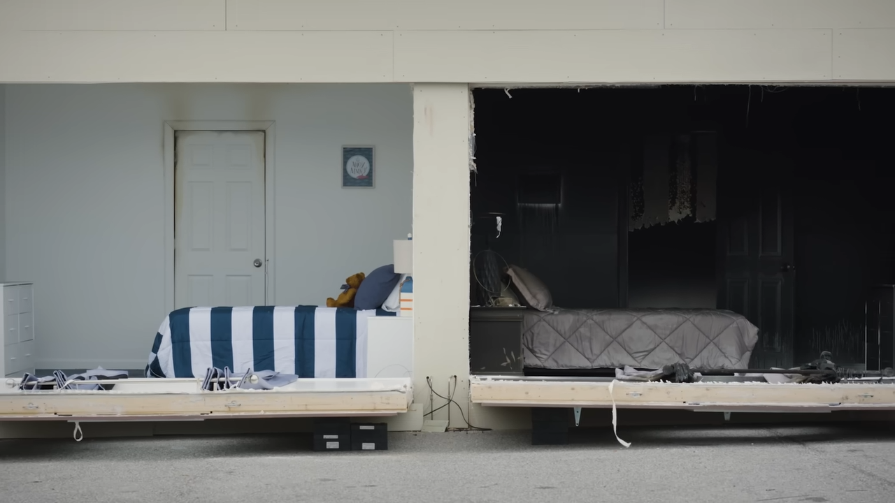 — Vad de flesta inte är medvetna om är att nästan alla möbler i dag består av syntetiska material och därför brinner mycket snabbare än äldre möbler som ofta var gjorda av naturmaterial, säger testledaren i videoklippet.