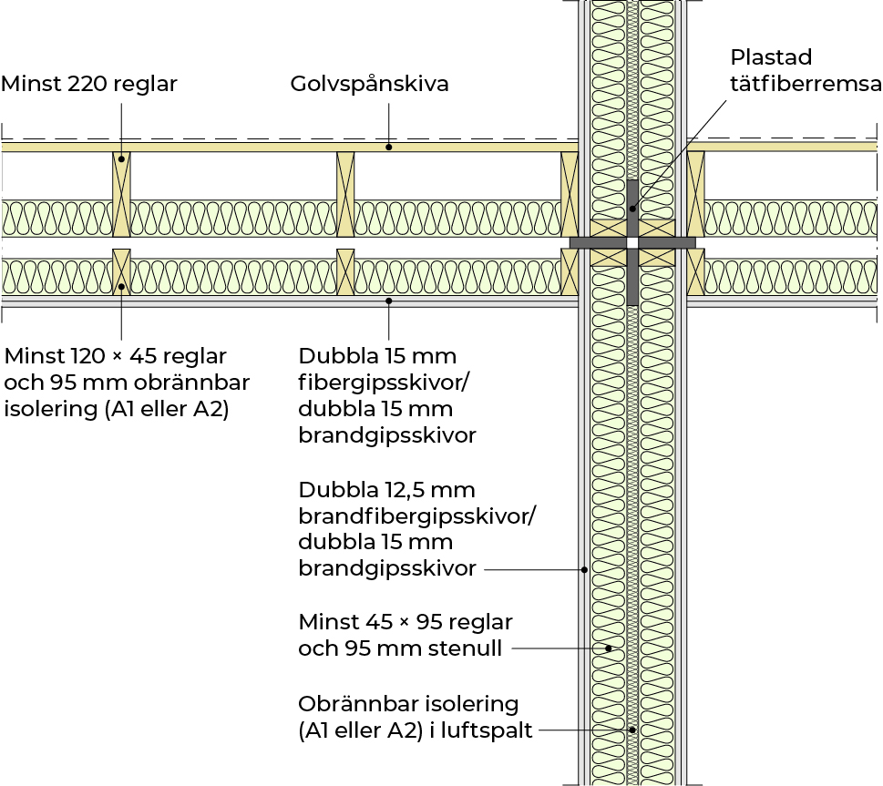 Källa: Branschregler – Robust brandskydd för modulhus med träregelstomme (sid 4). Här finns även definitioner av andra tekniska termer som används i branschreglerna.